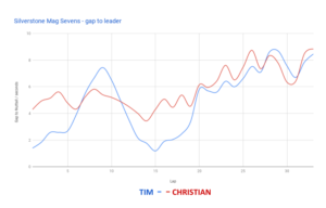 Unusually, the second Mag Sevens event was to be a 15-lap sprint and some of the contestants in the earlier race elected not to start. That included the winner Stephen Nuttall, which elevated Tim and Christian to the top two places on the starting grid.